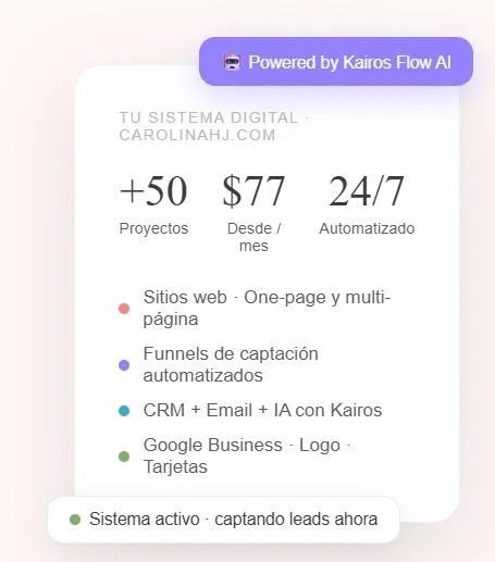 No solo construyo páginas bonitas. Instalo sistemas completos conectados al CRM, email marketing y automatizaciones de IA.